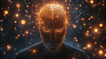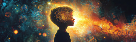 Abstract visualization of a child's mental processes with glowing neural nodes, showcasing advanced technology and human inspiration. Generated A.I.