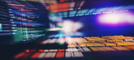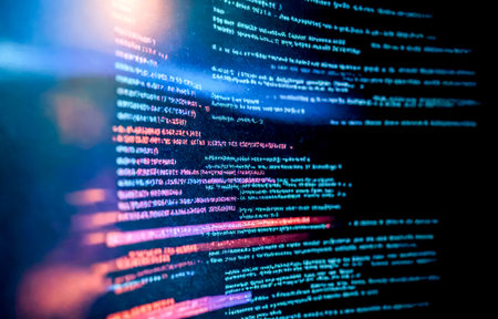 Dynamic close-up of vibrant computer code displayed on a dark background, representing innovation, creativity, and the intricate world of software development in technology.
