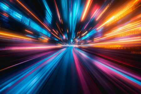 A visually striking image of high-speed light trails, showcasing dynamic motion and vivid illumination. The image captures the essence of rapid movement with long, glowing streaks of light, creating a sense of speed and energy.