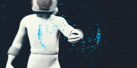Cyborg man in futuristic helmet. 3D rendering. Virtual reality.
