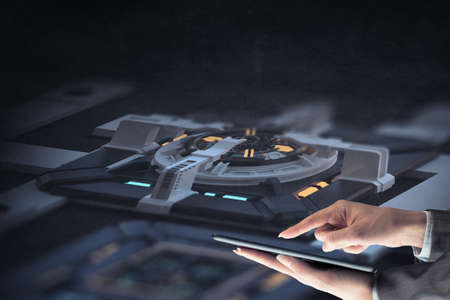 Picture of futuristic woman working with virtual technology