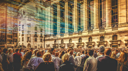 Group of investors observing stock market data in a trading room during trading hours at a financial institution