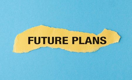 A torn piece of paper with the word Future Plans written on it. The paper is yellow and has a blue background