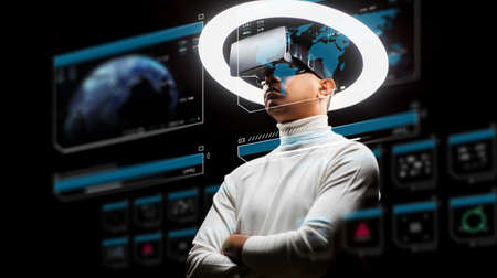 man in virtual reality headset or vr glasses