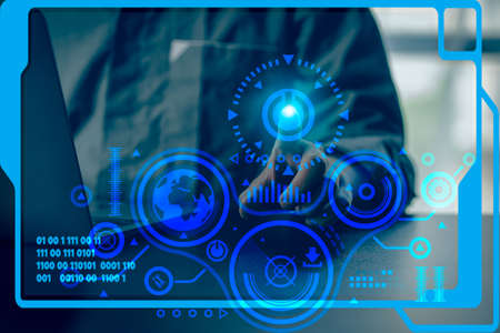 Virtual Business Intelligence Analyst Big data Graphs Charts.Automation RPA innovative technology concept business process on virtual screen