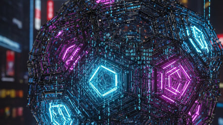 Futuristic Cityscape with Advanced Technology, Virtual Reality, and Illuminated Digital Elements