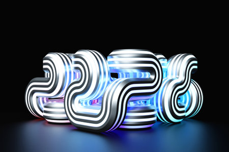 Happy New Year 2026. Futuristic glowing numbers on dark background. New Year concept. 3D Rendering