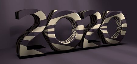 2020 year golden sign in abstract luxury interior or stage with black background. 3D illustration