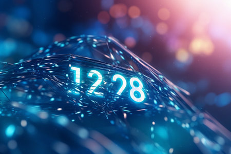 Futuristic 3D Digital Numbers Displaying Twenty Thirty on a Vibrant Particle Background Design