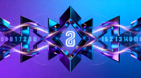 This image features a modern, abstract representation of a cryptocurrency symbol, highlighted with vibrant neon blue and green accents. The design showcases a sleek, futuristic style with dynamic lines and shapes, ideal for use in digital finance presentations, tech-related publications, or as a striking visual element in cryptocurrency-themed websites. The background is a deep, dark gradient that enhances the luminous effect of the neon colors. AI-generated illustration.