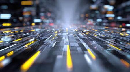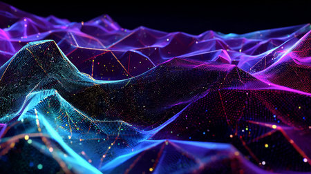 This stunning abstract digital landscape features vibrant colors and glowing lights creating a captivating and immersive atmosphere for technology-inspired projects.