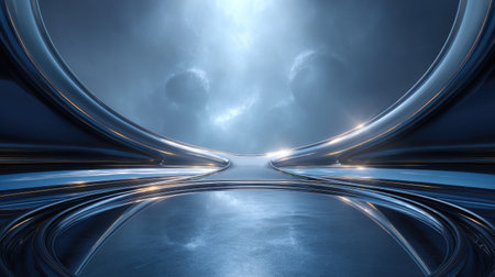 This stunning abstract image features a futuristic landscape with reflective surfaces, dramatic lighting, and a serene atmosphere, inviting exploration of digital possibilities.