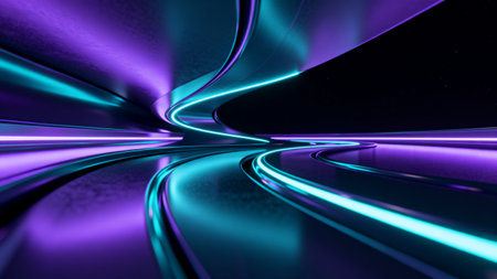 3D rendering of a futuristic tunnel with glowing lines and light effects