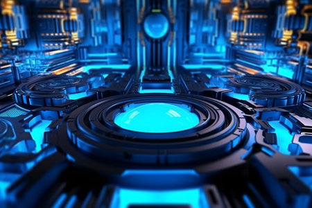 3d rendering of abstract metal background with blue lights. 3d illustration.