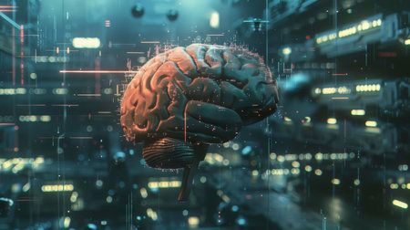 Graphic depicting a digital brain on a futuristic background; concept of artificial intelligence advancement;