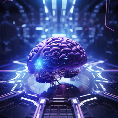 An elaborate brain illustration symbolizing advanced AI tech and neural networks, glowing with futuristic elements