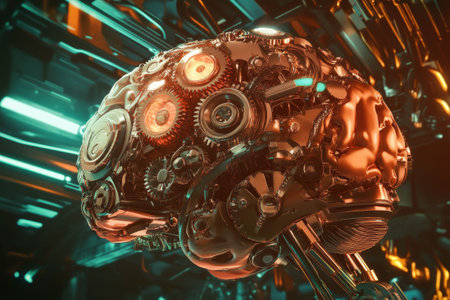 Brain made of gears, blending steampunk aesthetics with concepts of mind and mechanics. Perfect for themes of artificial intelligence, futuristic innovation.