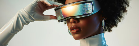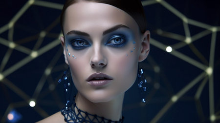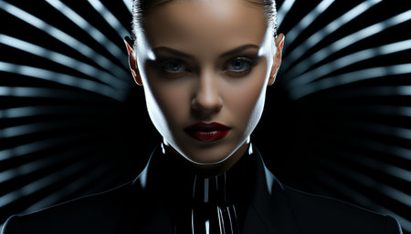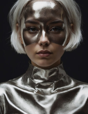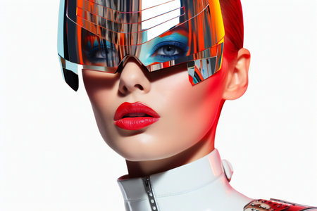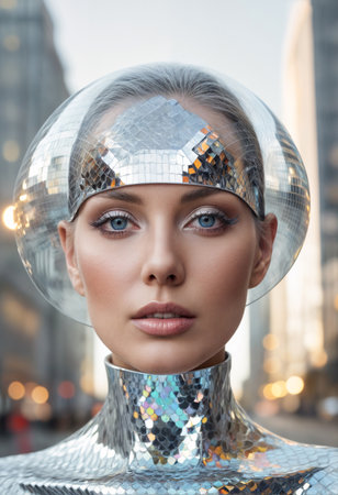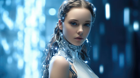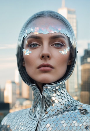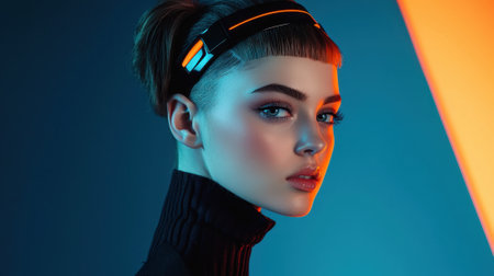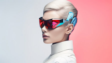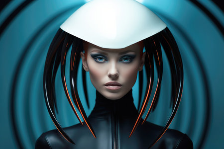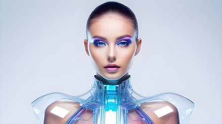 Innovative elegance: A futuristic woman embodies avant-garde fashion and tech.
