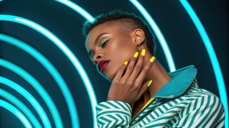 AI Generated. A bold fashion statement under dynamic neon lighting
