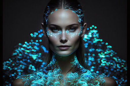 Stunning futuristic bioluminescent cybernetic fashion design glowing. Generative AI AIG15.