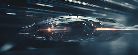close-up of futuristic vehicle, with blurred streaks of motion and light in the background, created with generative ai