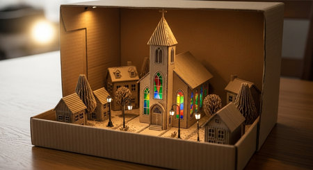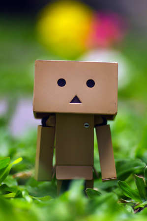 A cardboard in the garden with a bokeh background selected focus