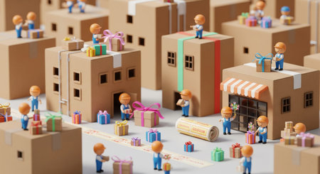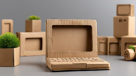 Close up of miniature brown boxes on computer keyboard for online shopping