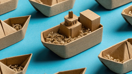 Miniature Thai ship and plane on brown box. Concept of cargo and shipping