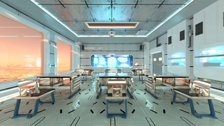 Futuristic school or futuristic university interior of modern design, ai illustration