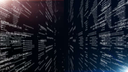 Abstract digital program code in blocks on a black background