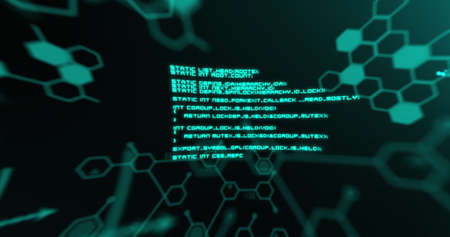 Abstract visualization of AI software development, seamless loop. Animation. Complex computer code being written in digital space.