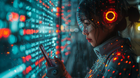 Futuristic technology. Portrait of a beautiful young woman looking at the camera.