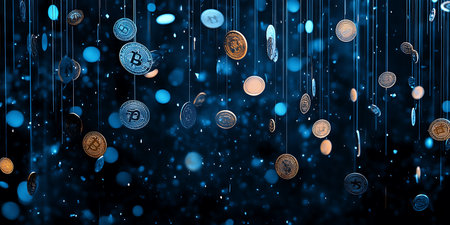 Close up of digital Cryptocurrency coins