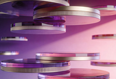 3D rendering of a round podium in a purple studio environment.