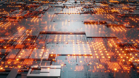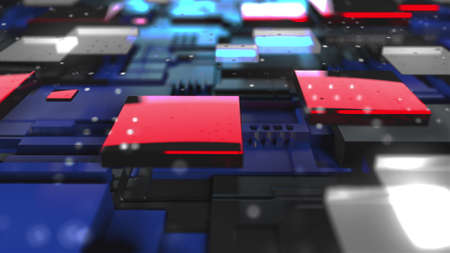 Circuit board futuristic server code processing. Multicolor technology background. 3d rendering abctract circuit board.