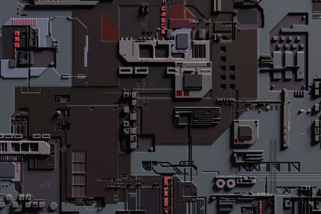 3D rendering of electronic surface sci fi background.