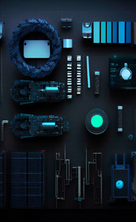 Overhead Flat Lay Shot Of Electronic Computer Components On Black Background