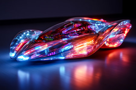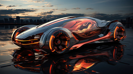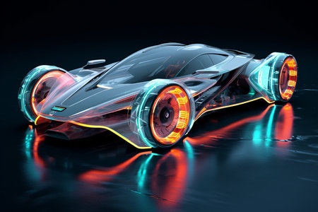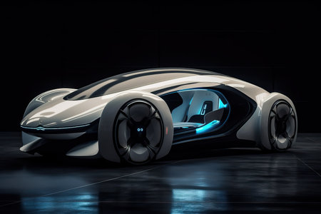 This image features a sleek, futuristic car design highlighting modern technology and artistic vision. The smooth lines and glowing elements provide an innovative and stylish appearance.