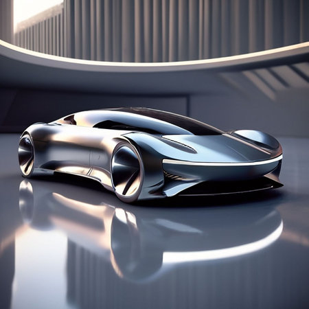 Conceptual sleek future car design in a modern environment