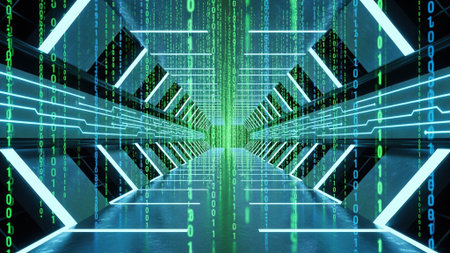 Futuristic corridor with binary code on it. 3d rendering
