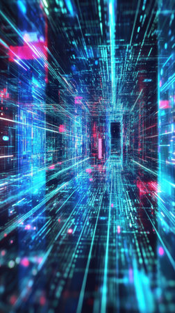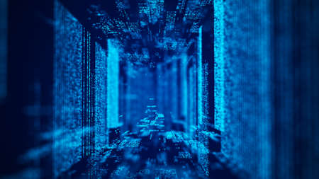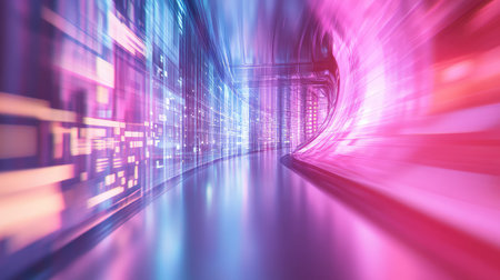 Abstract technology tunnel moving fast through digital network