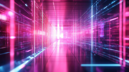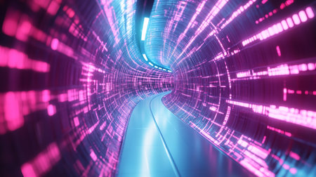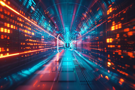 abstract 3d illustration of technology tunnel with glowing lines and particles