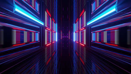 3D rendering of Futuristic scifi tunnel corridor with neon lights