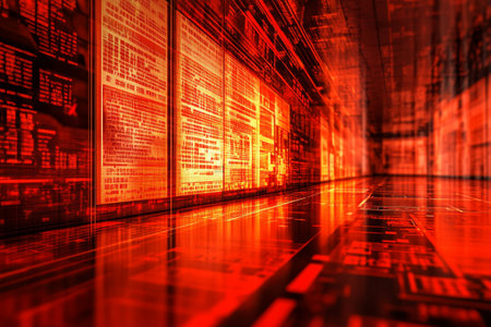 Abstract digital data streams with red and blue light effects in a futuristic technology background.
