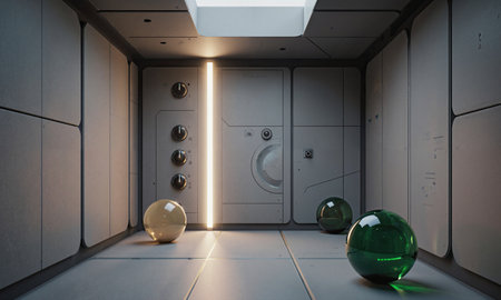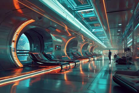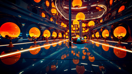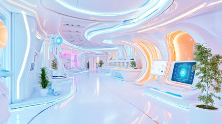 Futuristic interior of a high-tech facility showcasing sleek design and innovative architecture in a vibrant color palette