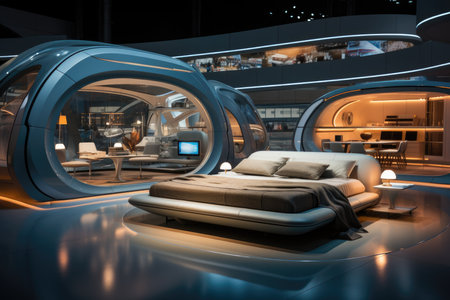 futuristic living room interior design with high-tech and luxury furniture