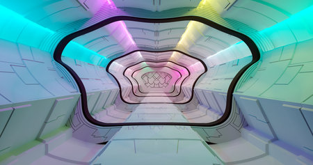3D rendering of abstract scifi space tunnel corridor with glowing lights