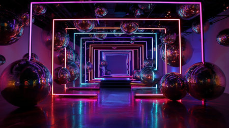 Abstract architecture with neon lights and reflections display art