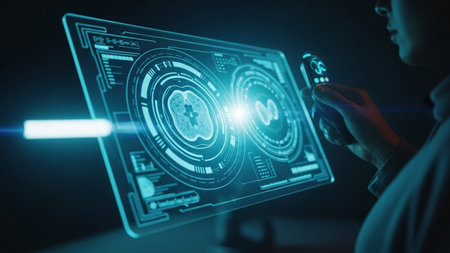 Holographic Digital Interface in Futuristic Setting