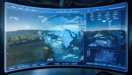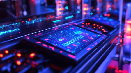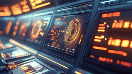 Experience a glimpse into a high-tech control room, featuring illuminated screens and intricate data interfaces that highlight a futuristic and innovative workspace.